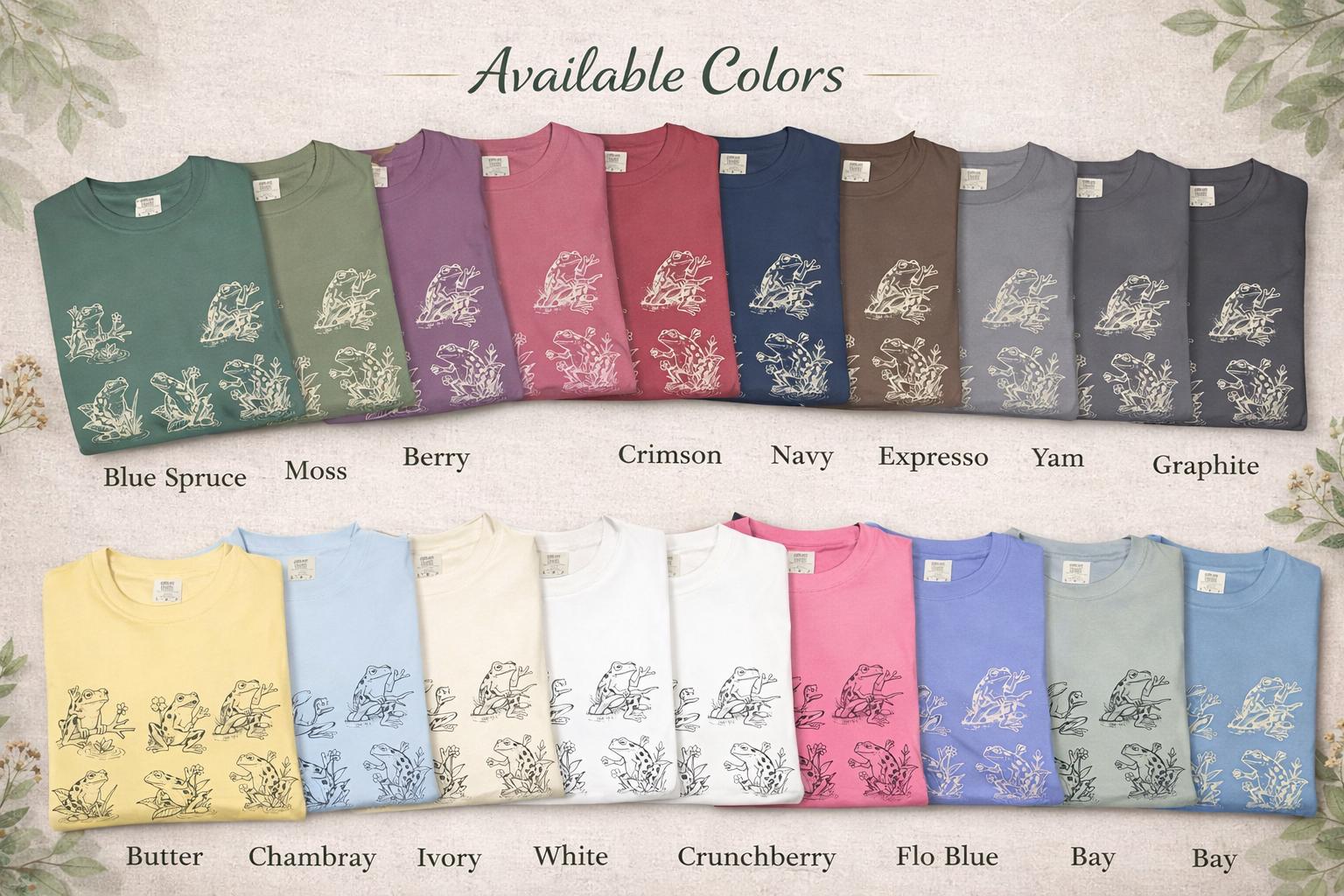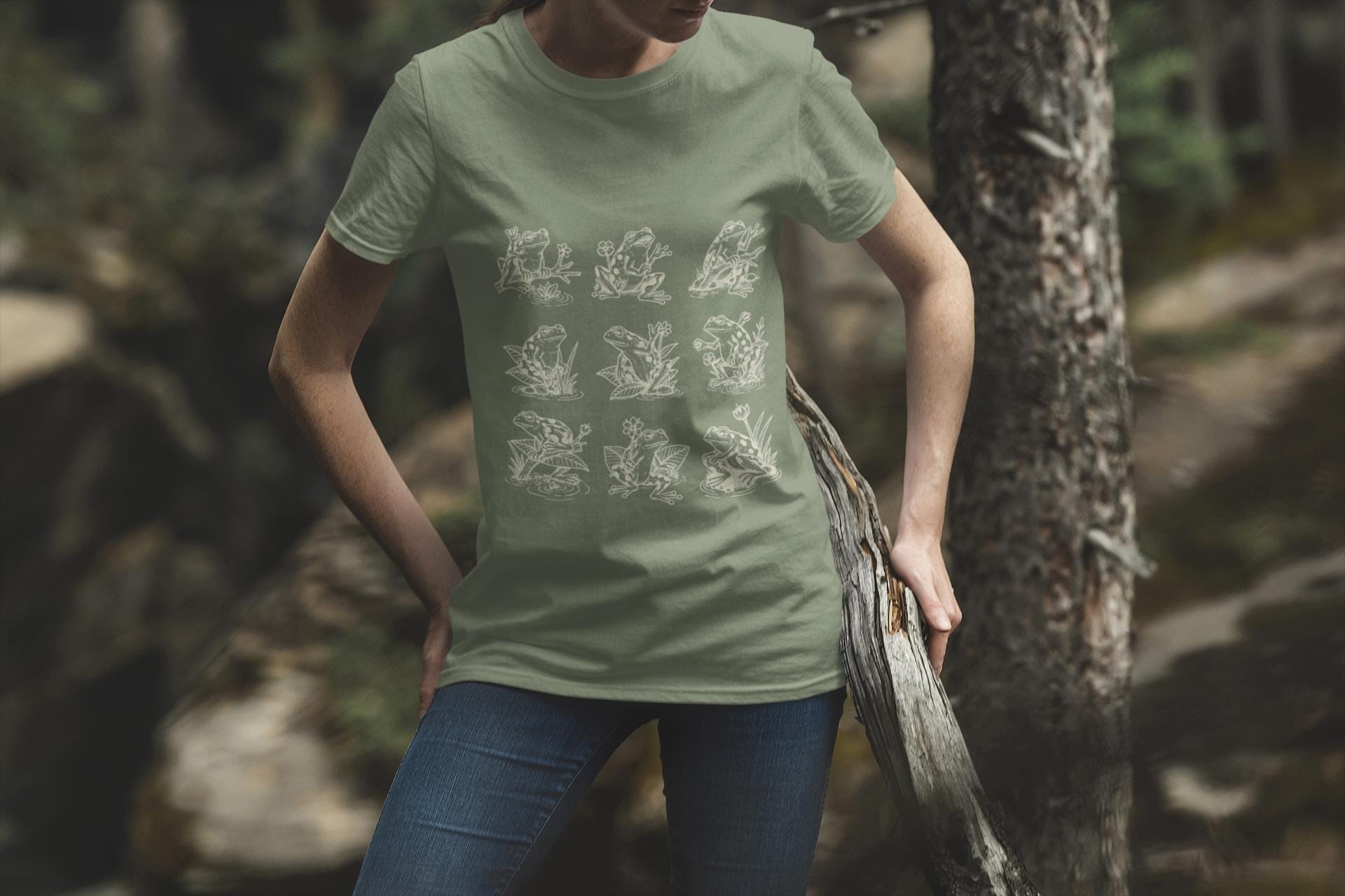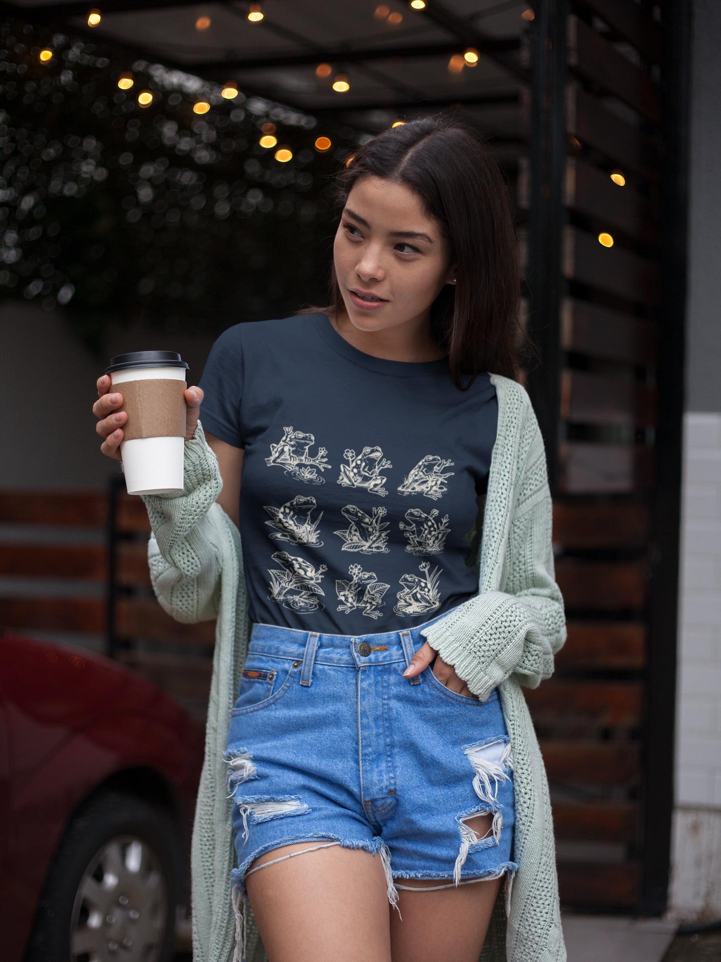 This relaxed, garment-dyed cotton tee brings a quiet, playful energy to slow mornings and easy afternoons. A hand-drawn grid of frogs—each caught in a different, charming pose—feels like a small sketchbook of pondside moments. The heavyweight, worn-in fabric settles softly against the body; its after-dye texture gives every color a lived-in, slightly unique hue. Slip it on for a stroll by the water, layering beneath a flannel when the air cools, or for lounging with a book and a warm mug. The sewn-in label keeps the neckline tidy, and the relaxed cut reads like an old favorite you reach for without thinking. For people who love subtle nature details and quiet comfort, this tee quietly celebrates simple, slow rhythms.