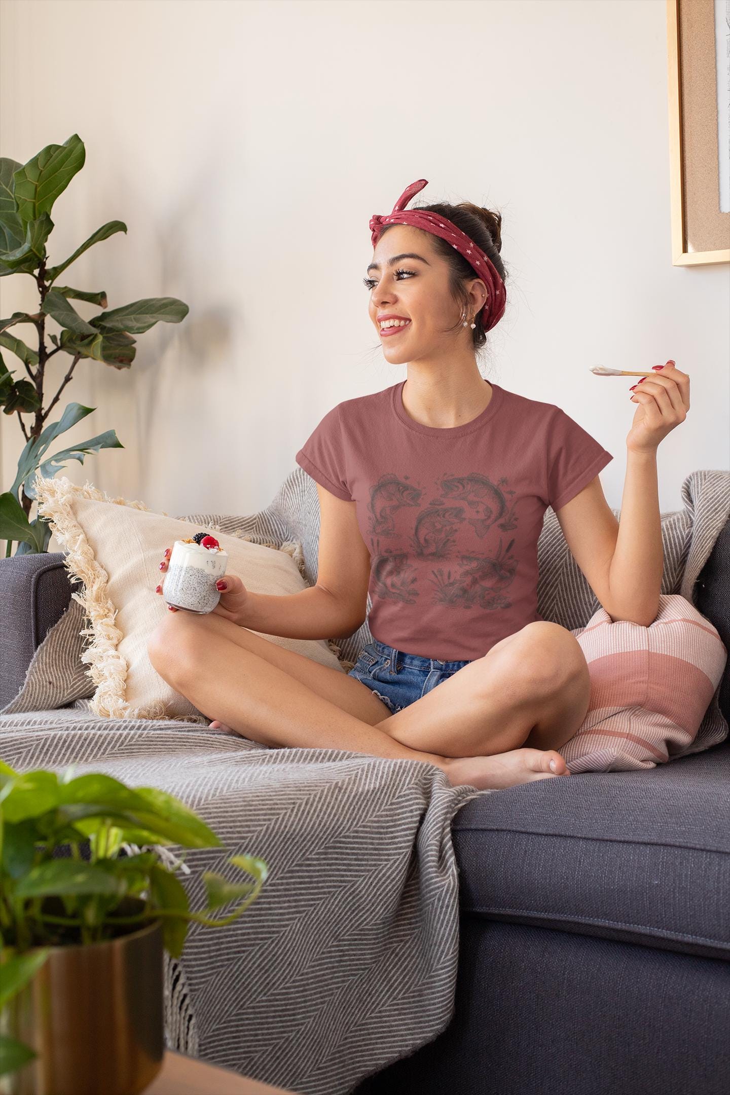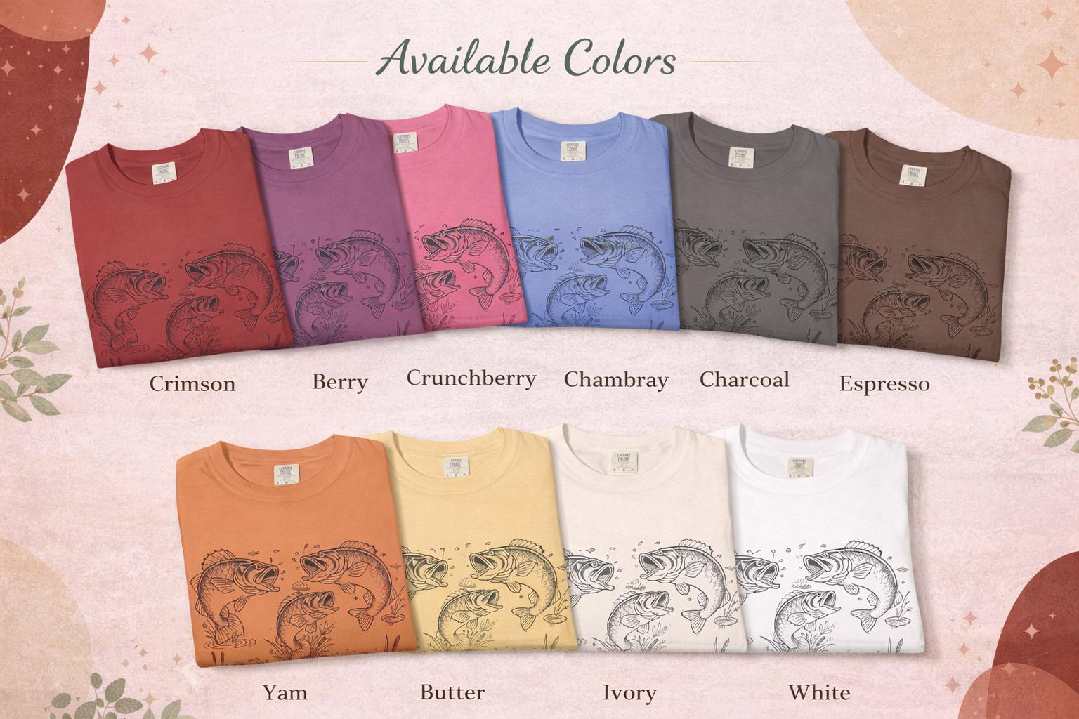 This relaxed-fit tee arrives already feeling like an old favorite. The garment-dyed cotton has a soft, slightly faded surface that moves quietly with the hand-drawn fish artwork across the chest—each fish captured mid-leap or weaving through weeds in a muted, nature-led palette. It layers naturally under a flannel or wear solo with worn denim and boots, slipping into early morning casts, slow dockside evenings, or any time you want an outdoorsy look that’s understated. Thoughtful construction—double-needle stitching, a sewn-in label, and tubular knit—means it’s built to handle repeated wear while keeping its lived-in feel.