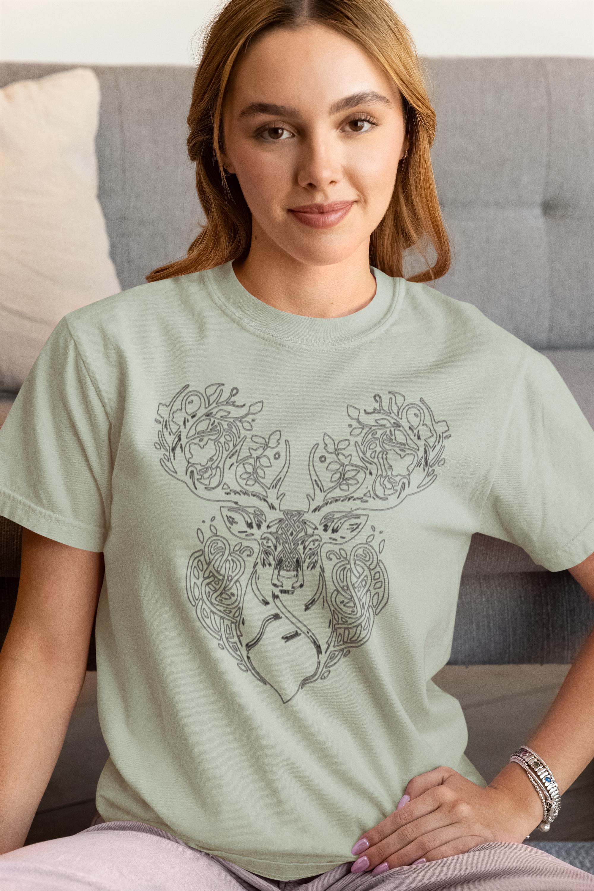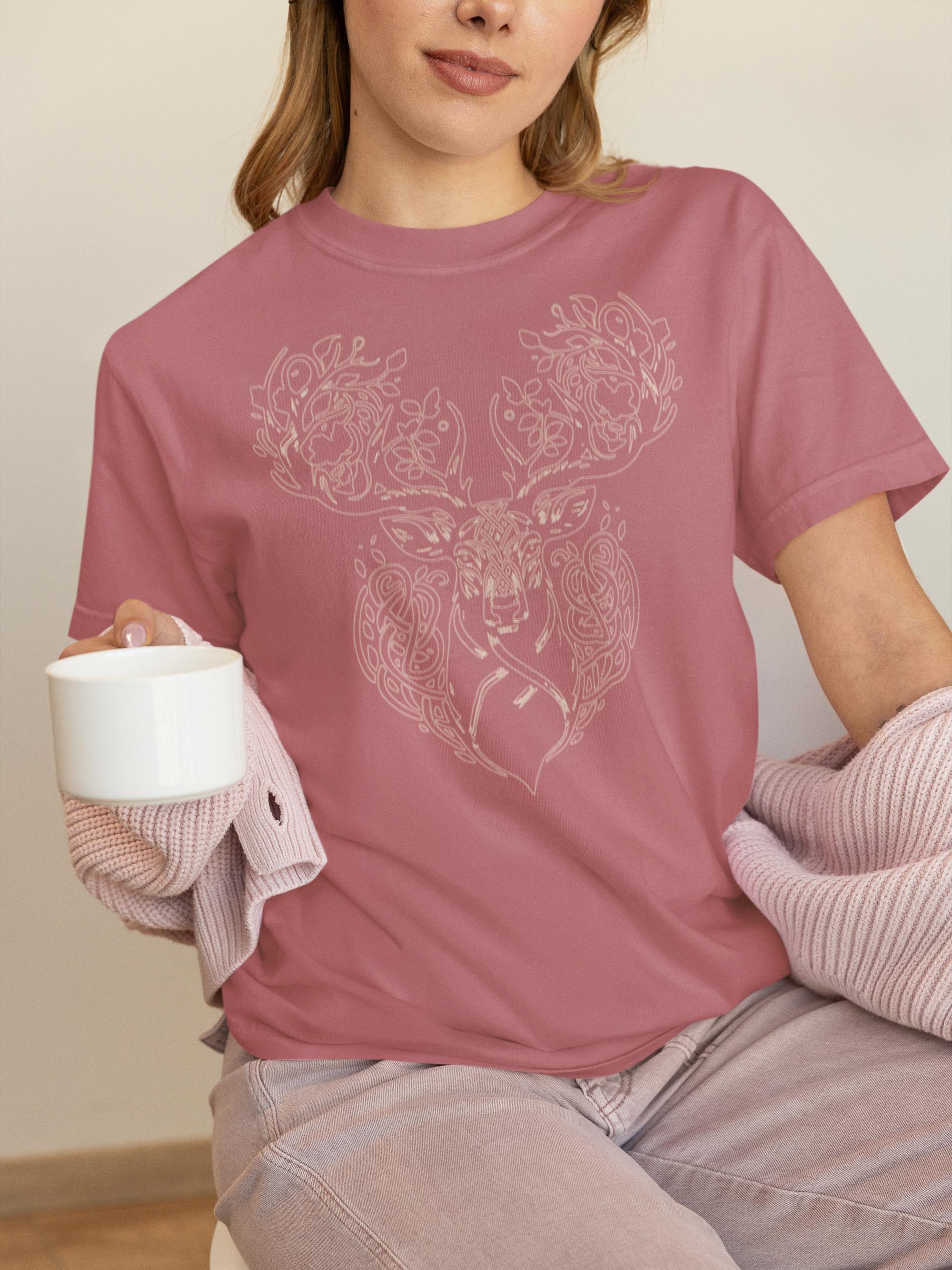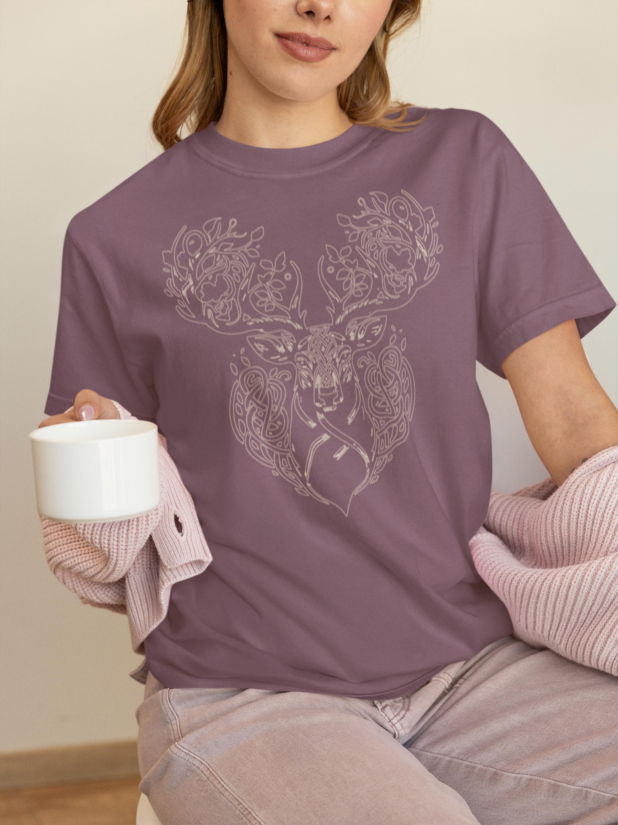 A lived-in, lakeside tee that feels like a quiet ritual. The relaxed, garment-dyed fabric has a soft, slightly broken-in hand from the first wear, and the delicate stag head line-art on the chest offers a calm, nature-forward accent. Wear it layered under a flannel at dawn, or alone with a thermos after a short hike. Built from heavyweight, ring-spun cotton and pre-shrunk for a steady fit, this shirt develops character with time—fading gently and softening into something familiar. It’s for people who value durability and nuance: those who appreciate slow mornings, trail-side coffee, and clothing that ages alongside their stories.