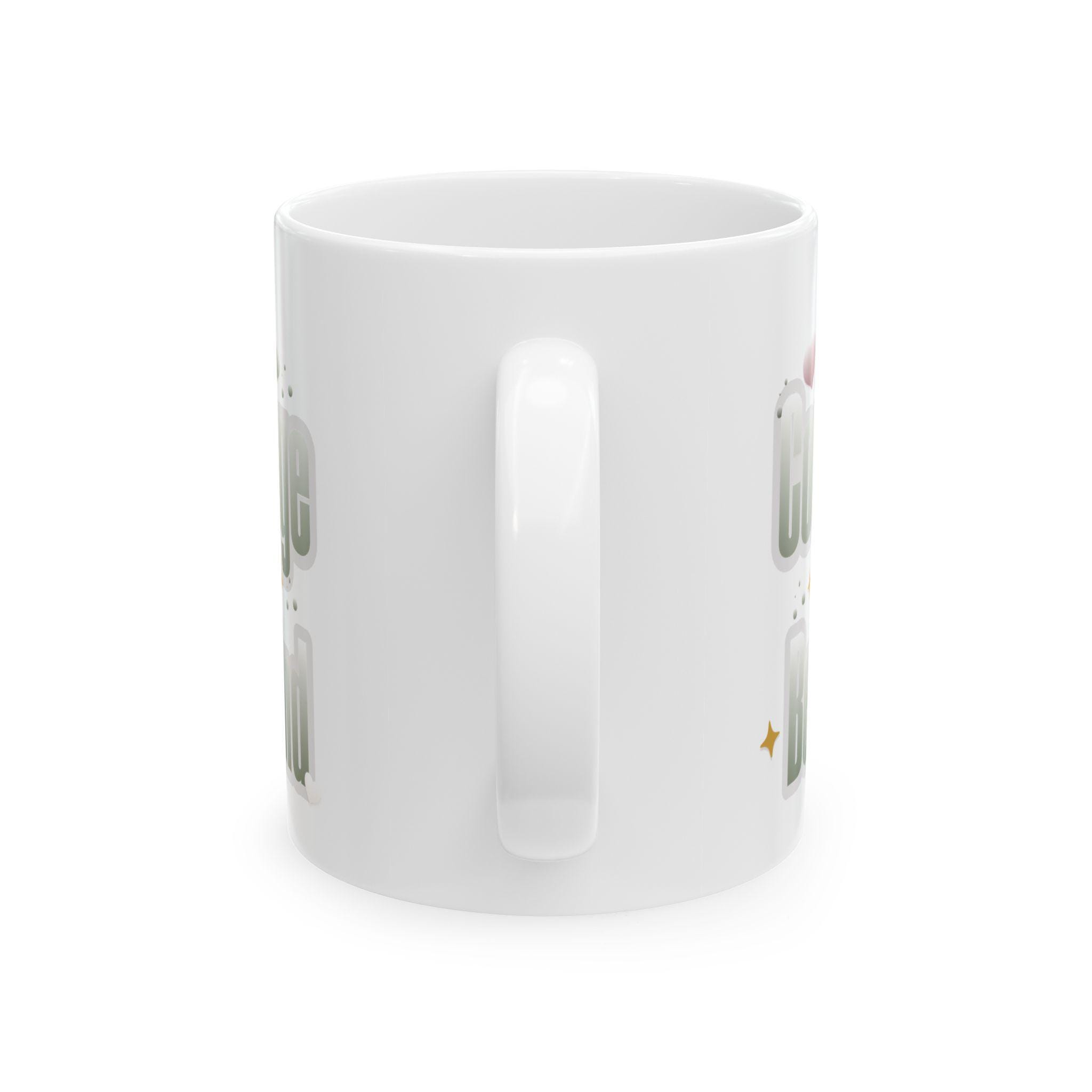 This glossy white ceramic mug brings a quiet, uplifting presence to your daily routine. large, soft-lettered text declares a gentle reminder to “Have courage and be kind,” surrounded by tiny cloud-like accents and pastel hearts that feel like small breaths of calm. Held in a C-shaped handle, it’s a comforting companion for morning coffee, late-night tea, or a desk-side pause. The deep black finish lets the pale lettering pop, giving the message an intimate, reflective tone that suits slow mornings, thoughtful breaks, or handwritten notes left for someone you care about.