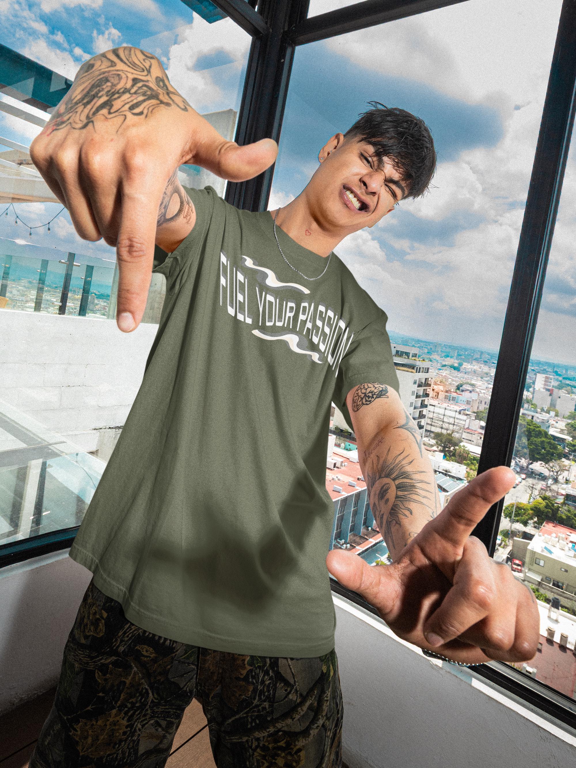 This lightweight crew tee brings a bold, kinetic vibe to everyday wear. The front graphic reads “FUEL YOUR PASSION” in a warped, high-energy type with subtle flame-like streaks—made to feel like motion even when you’re standing still. Designed on a soft, ring-spun cotton fabric, the shirt drapes cleanly and resists stretching thanks to ribbed collar and shoulder-tape reinforcement. Wear it to morning sessions, late-night drives, or layered under a jacket for gigs and meetups; it’s for people who chase momentum and like their clothes to say it for them.
