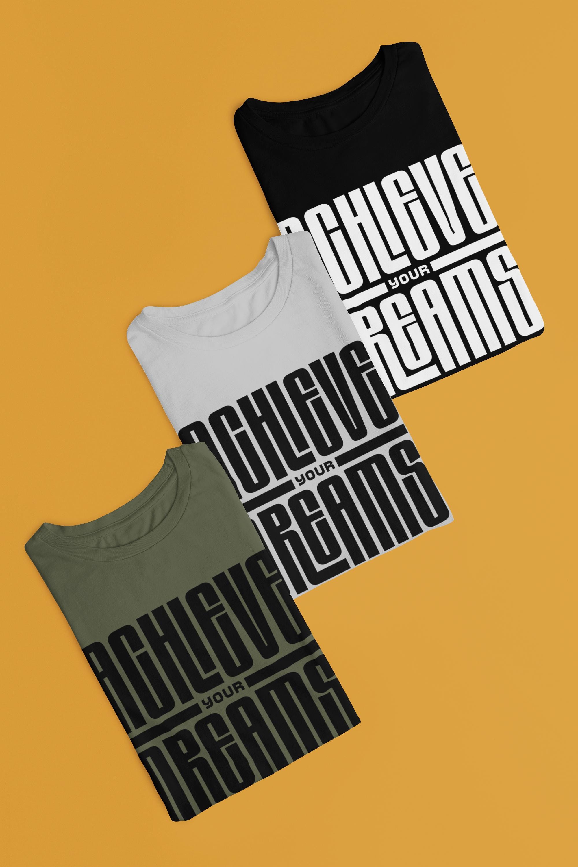 The Achieve Your Dreams tee delivers a powerful message in clean, commanding typography—designed to motivate without shouting. Printed in striking solid text on a crisp canvas, this shirt feels modern, intentional, and quietly confident. It’s the kind of piece you throw on when you’re building something, chasing something, or simply reminding yourself you already have what it takes.