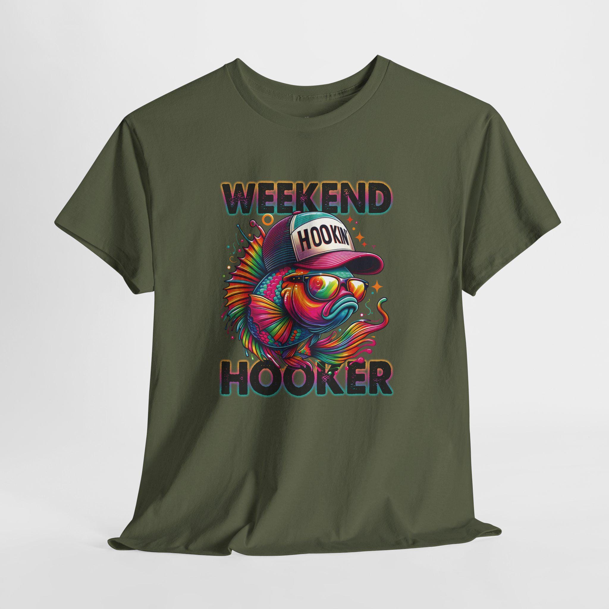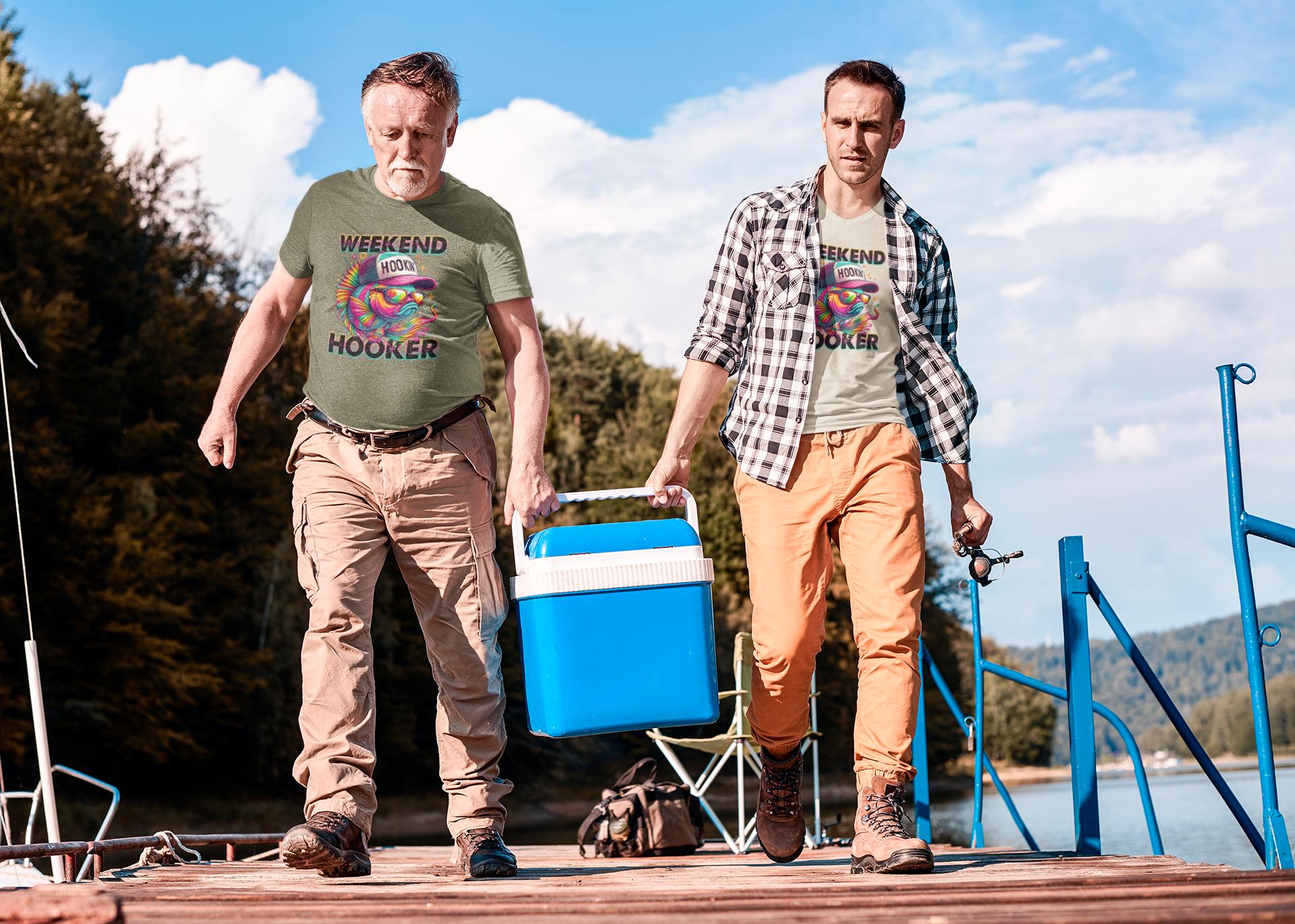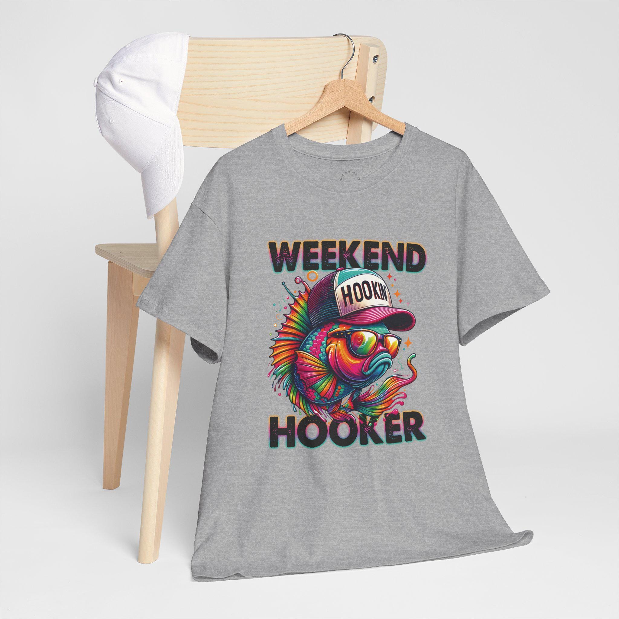 This Weekend Hooker Fish T-Shirt is made for anglers who live for loud colors, good laughs, and even better fishing stories. Featuring a vibrant, sunglasses-wearing bass rocking a “Hookin’†cap, this design brings playful personality to your fishing wardrobe—perfect for lake days, boat launches, tournaments, or post-trip hangouts.